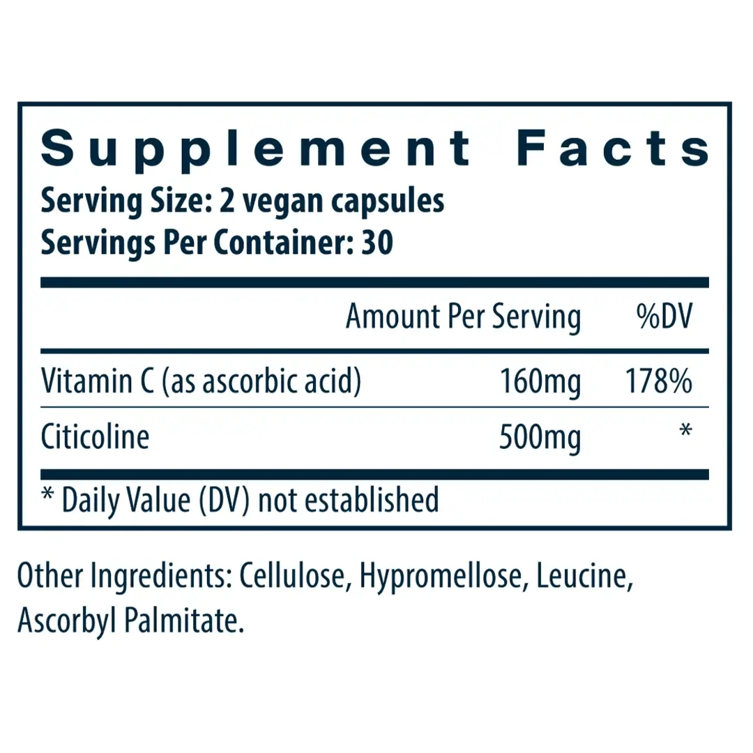 Vital Nutrients uses Cognizin®, a patented and research backed form of Citicoline, a naturally occurring nutrient found in every living cell. Citicoline helps support the brain’s metabolic activity and has a variety of cognitive enhancing, neuroprotective and neuroregenerative properties.* It is also an essential building block for certain key neurotransmitters that help support focus, attention and the formation of new memories.* Research suggests Citicoline may help to mitigate age-related cognitive decline by increasing energy reserves and utilization. * A review of citicoline supplementation with older subjects found improvements in a wide range of cognitive and behavioral measures, including memory, attention, behavior, reaction time, relational life, independence and cooperation.*