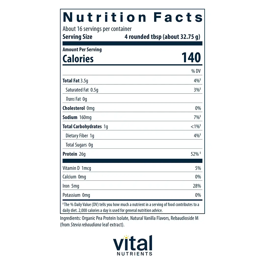 ProVeg is an organic pea protein powder that provides 23 grams of protein, with a comprehensive amino acid profile. ProVeg is flavored with natural vanilla and contains no added sugar or artificial sweeteners. ProVeg is free of soy, gluten, dairy and genetically modified ingredients, making this plant-based supplement appropriate for a wide range of diets. ProVeg is delicious when mixed with water, non-dairy milk, juice, or added to your favorite smoothie recipe.