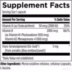 Vitamin D is a key player in supporting bone health and calcium regulation in the body, and it is also essential for proper immune function.* Vitamin K also supports bone and heart health.* Vitamin K is critical for directing the transport of dietary calcium into the bones and teeth and away from the arteries.*